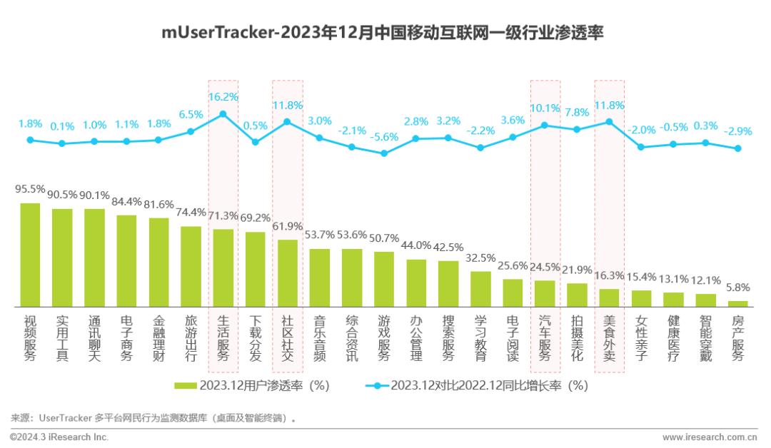 生活、社交、汽车、美食相关的四大行业2023年流量增长较为明显