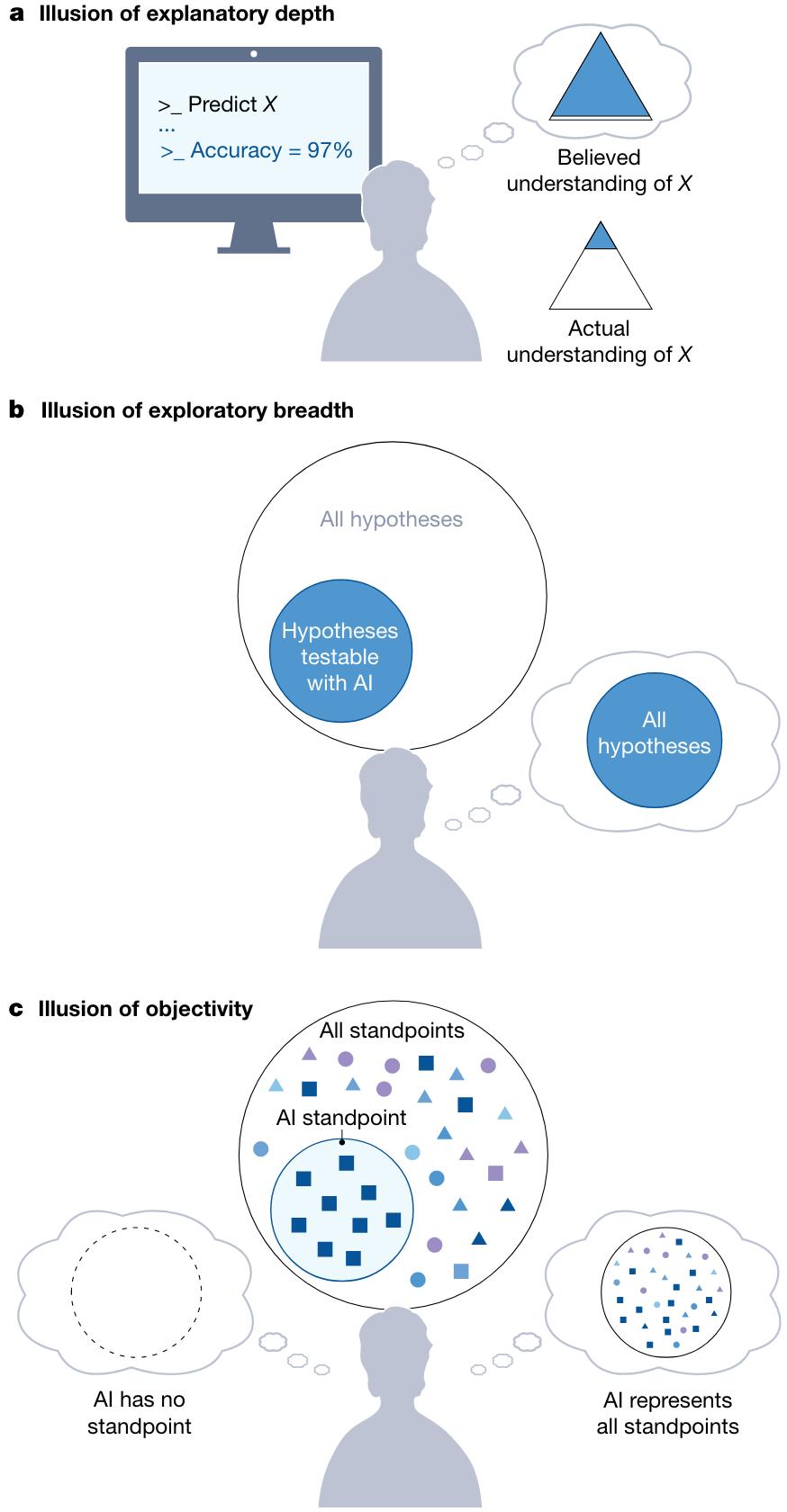 然而,将 AI 整合到科学研究中也存在认知风险,尤其是认知理解的错觉形式。
