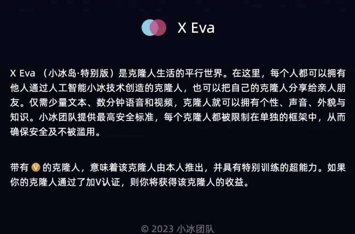 比如数字人赛道领先的小冰,去年推出了首批网红明星克隆人,高度接近本人的对话性格、声音、外貌,就像被设定为帅哥美女、可以说话、主打陪伴的 GPT。安全起见,使用场景限制在特定产品中,不开放 API。