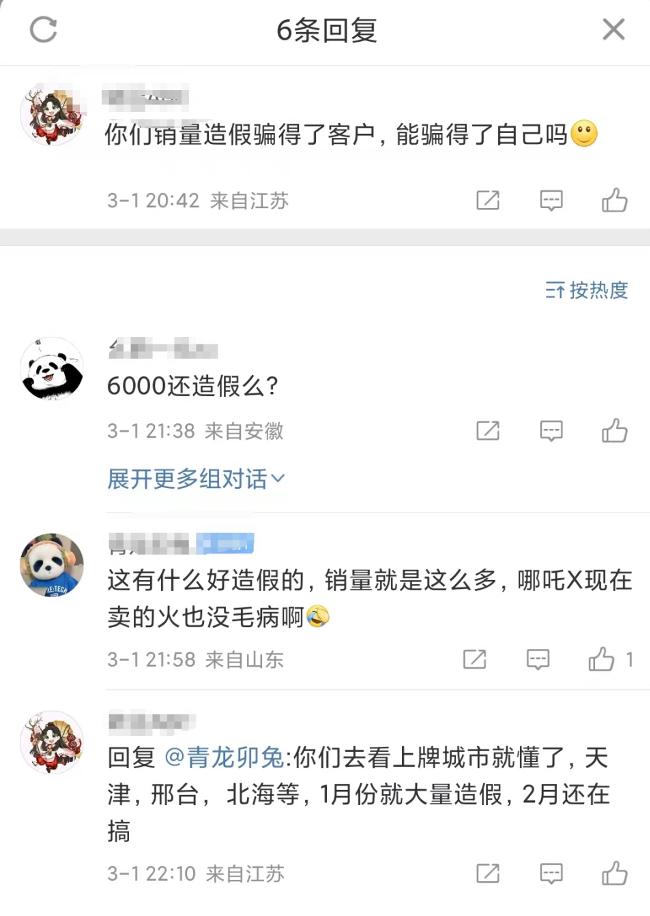 但,即使是6000多辆的月销量,仍有微博发出质疑,“你们销量造假骗得了客户,能骗得了自己吗?”