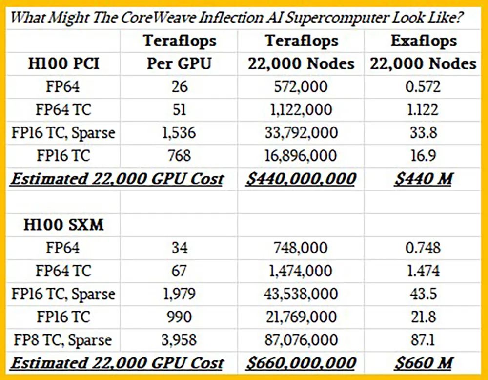 2023年6月,Inflection AI宣布与将与合作伙伴CoreWeave、英伟达一起,构建世界上最大的AI集群,包含22000个H100 GPU。