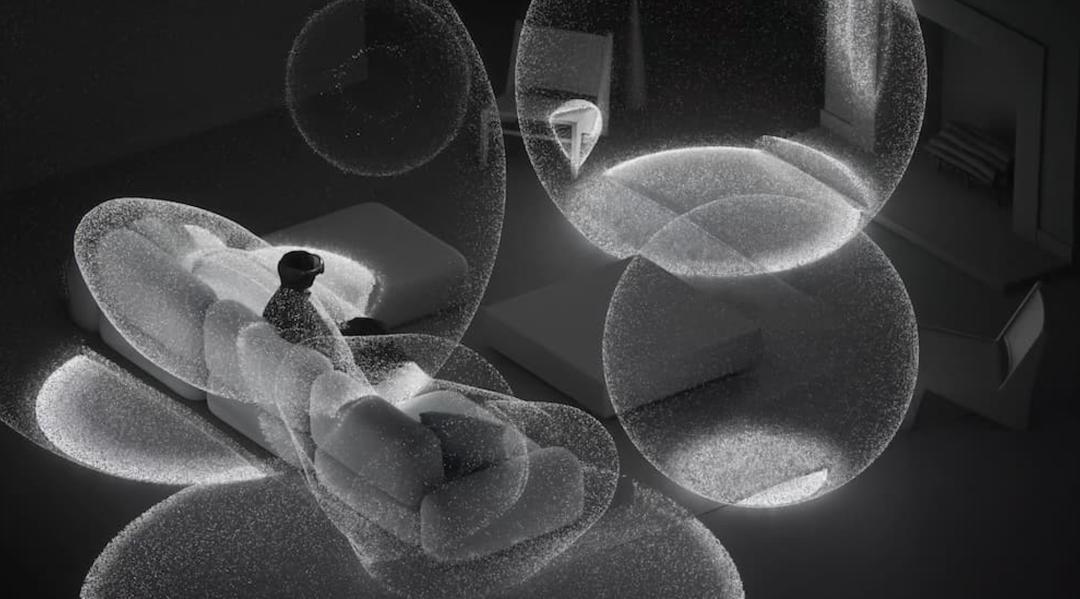 如此精准的定位来源于 Vision Pro 前方的视觉定位系统,通过红外线、摄像头等扫描所在空间的物理信息,并记录窗口在重构空间中的物理位置,以此实现了令人惊叹的准确定位。