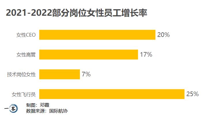 改变一直在发生。出行一客从国际航协了解到,从2021年到2022年,女性飞行员新增1000多名,增加25%,欧洲与亚太区航空公司引领增长;技术岗位的女性比例为20%,增加7%;女性高管比例从2021年的24%增加到28%,其中女性首席执行官人数升至28位,增速近20%,标志着女性在航空业领导层的地位正在快速提升。