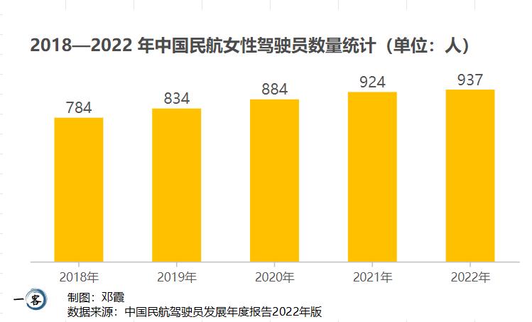 女性机长群体正在越来越庞大。据2022年《中国民航驾驶员发展年度报告》指出,中国女性驾驶员数量正在逐年攀升,从2018年的784人扩大到2022年的937人。