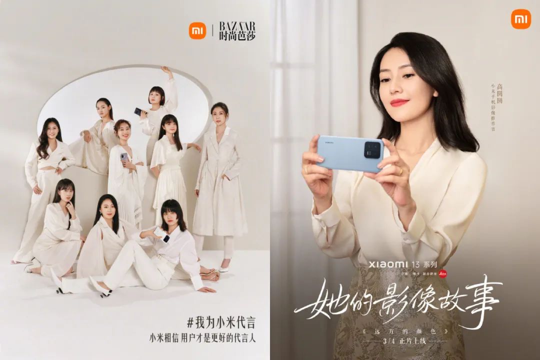 在最近几年里,小米还有过其他几次女性主题营销。比如 2021 年米粉节期间,小米联合《时尚芭莎》发布了“寻找女性用户代言人”的活动。2023 年妇女节,小米 13 邀请推荐官高圆圆、高叶、文淇以视频的形式来分享影像故事。