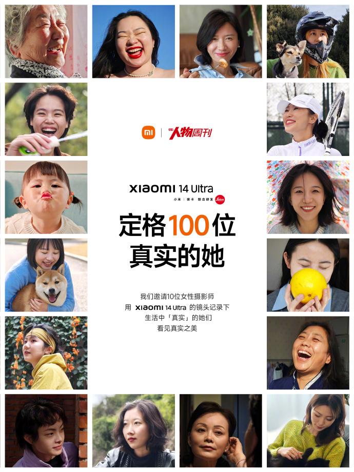 今年妇女节之际,小米联合《南方人物周刊》,共同邀请了 10 位女性摄影师,用小米 14 Ultra 手机记录下她们生活中 100 位真实的中国女性。