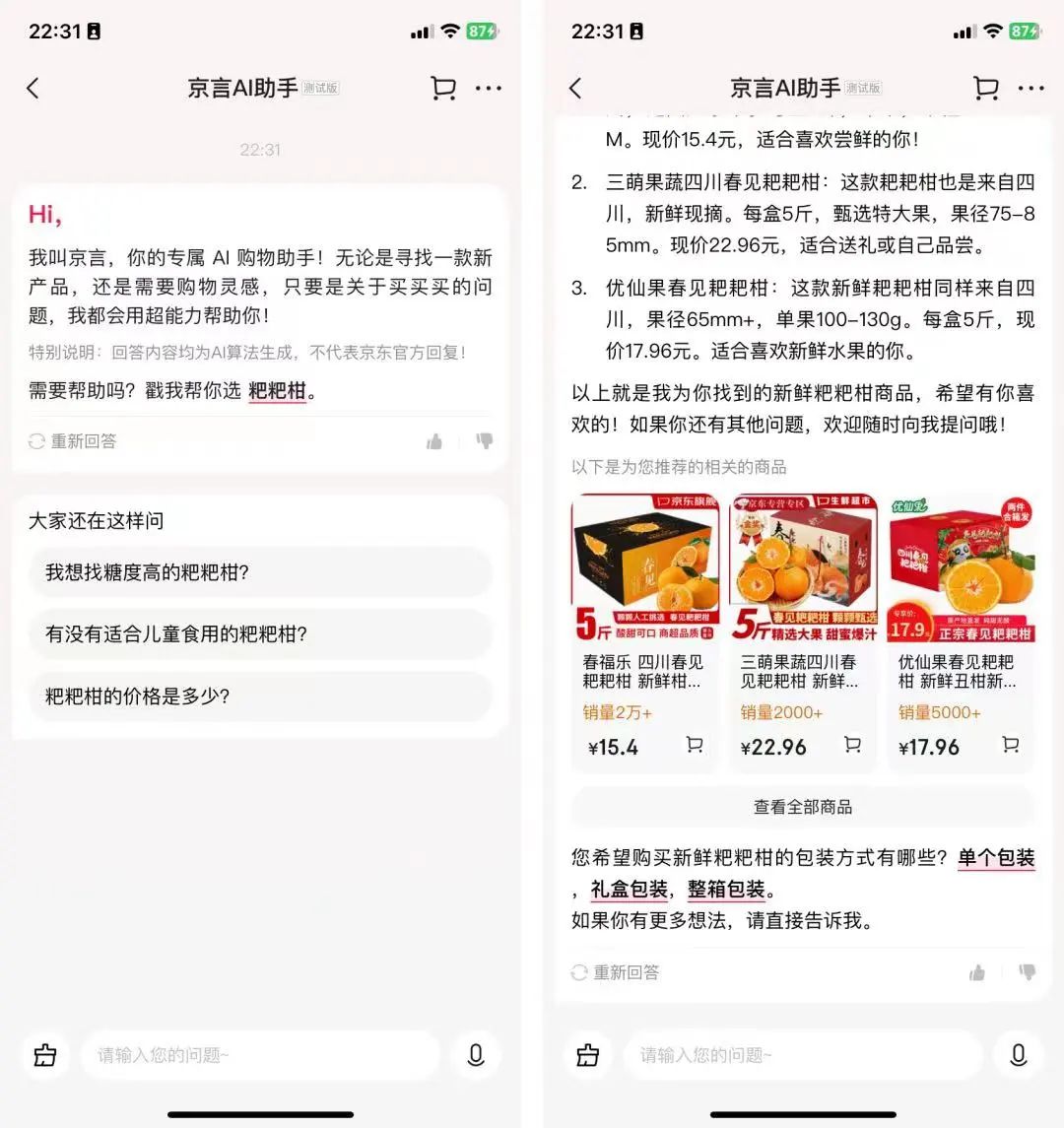 目前,京东京言AI助手已经能够完成基本的商品查询、推荐、对比等任务,并在实际应用场景中提供了较为准确的信息咨询服务;在智能对话方面,京言AI能处理大多数常见的购物相关问题。