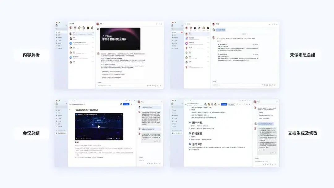 目前,飞书AI已成功应用于多个办公场景,包括但不限于会议管理、文档处理、内部信息检索、任务创建与跟踪、流程自动化等,有着较实用的办公辅助能力。