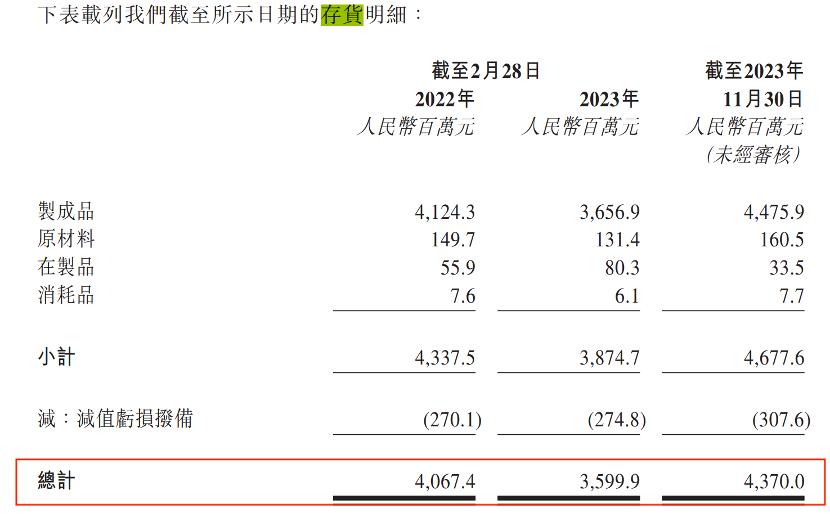 2021财年至2023财年前三季度,企业的存货分别为40.67亿元、36.00亿元、43.70亿元,堆积的存货无法变现,不可避免地对企业的现金流造成影响。
