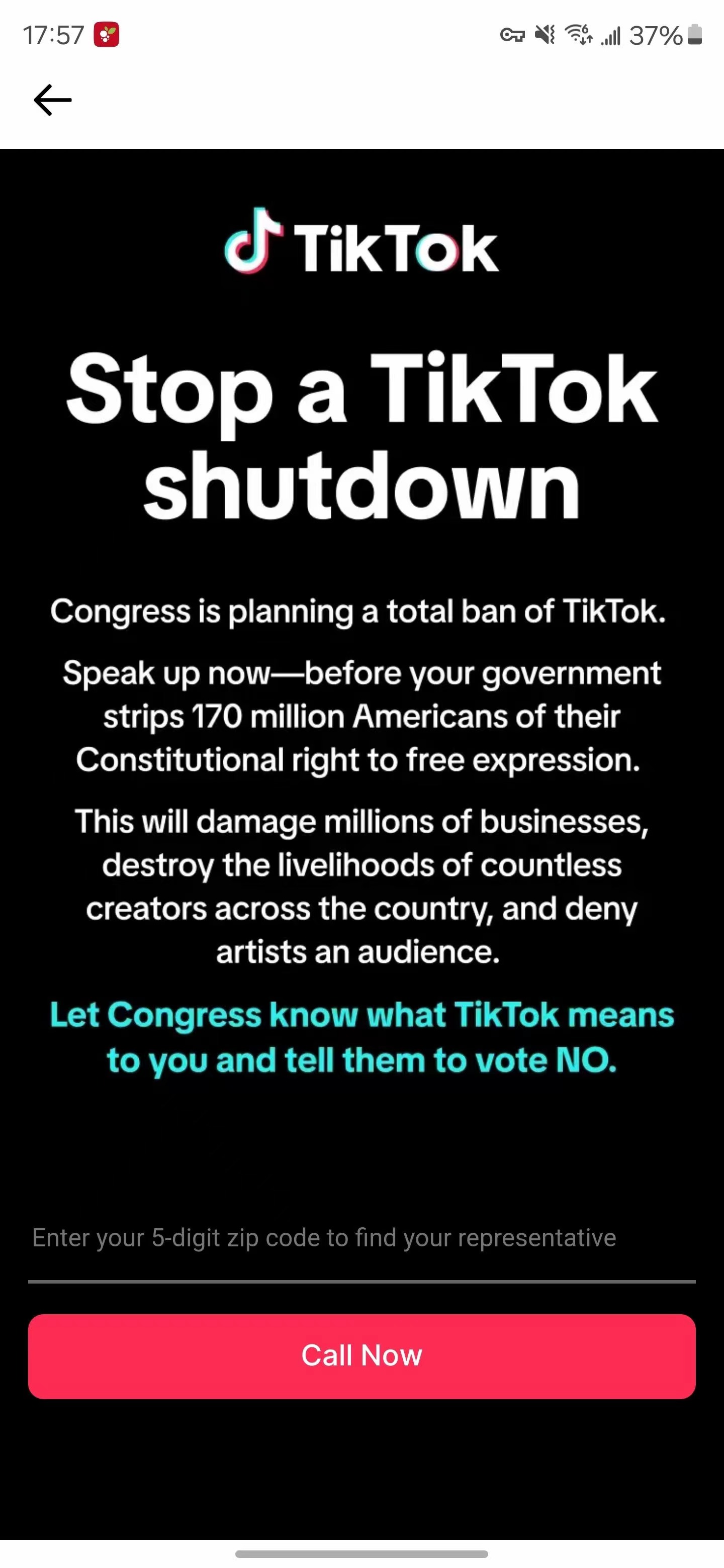 TikTok弹窗号召美国用户,向国会反对封禁
