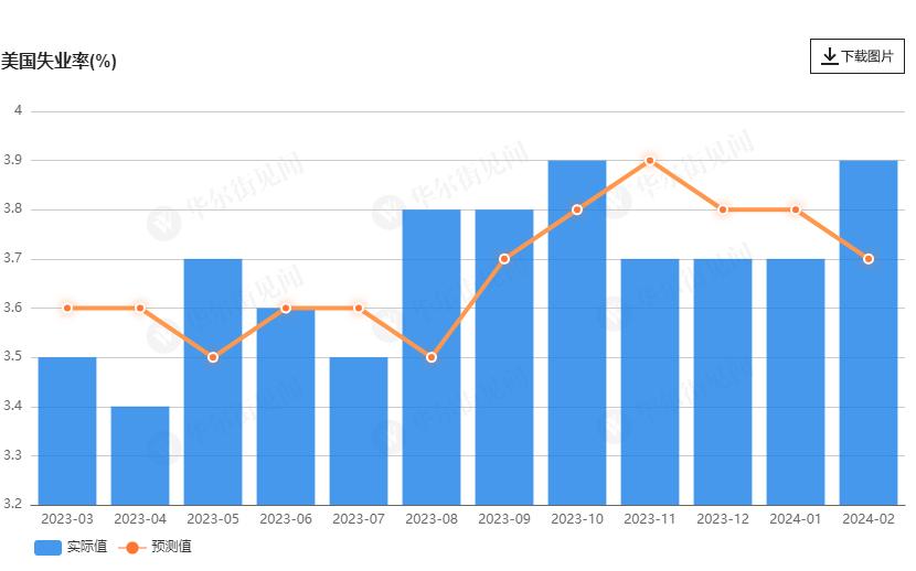 美国2月非农失业率意外上升至3.9%,创2022年1月以来新高,高于市场预期的3.7%,1月前值为3.7%。