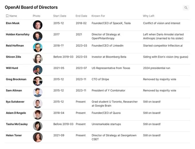 而至于Altman和Brockman之外的4名董事,雅虎CEO的评价是“其它同等规模公司的独立董事的经验,往往比OpenAI的这4名独立董事更多”。