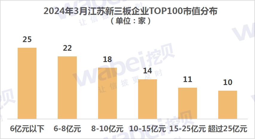 挖贝研究院梳理出2024年3月江苏新三板企业市值TOP100(以下简称:“榜单”或“TOP100”),10家企业市值超过25亿元,30家企业冲击北交所。