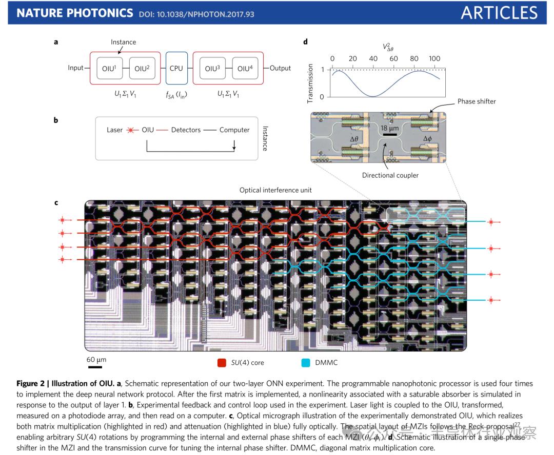 2017年,曦智科技创始人沈亦晨(MIT团队成员之一)等人提出一种基于硅光平台的全光前馈神经网络架构,采用马赫-曾德干涉仪(MZI)进行神经元线性部分的计算,非线性激活函数则通过电域仿真的方法实现。