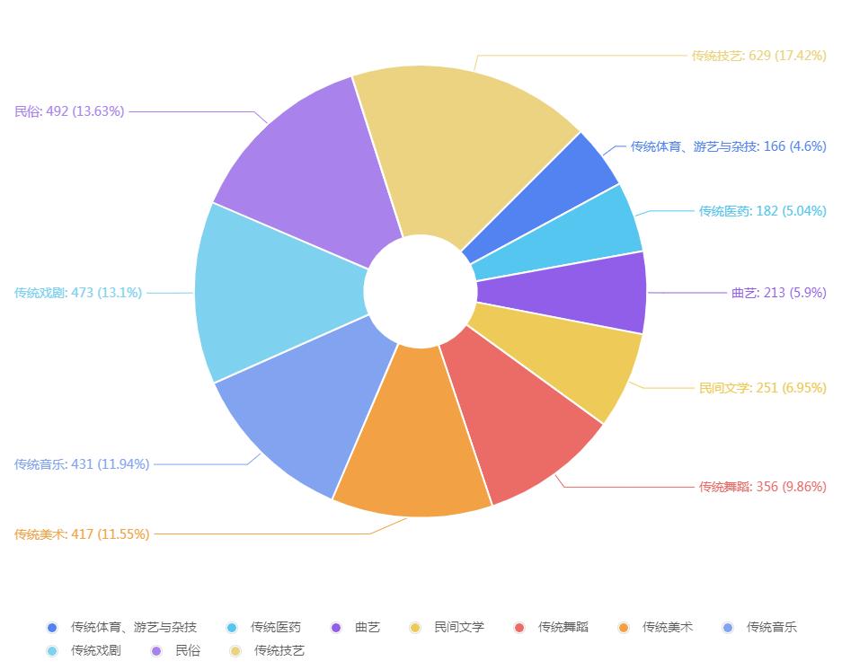 在十大门类,3610个子项中,传统技艺占比最大,其次是民俗、传统戏剧,这也是“旅游+”产品打造中拥有高适配性的非遗。此外,传统舞蹈、曲艺也是核心,而民间文学则通常被改编为演艺项目。