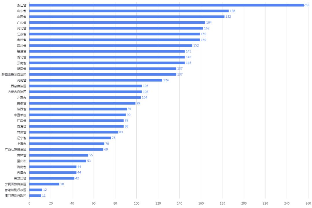 具象到省份,浙江、山东、山西、广东、河北、(江苏、贵州)、四川、(福建、湖北、云南)、(湖南、新疆维吾尔自治区)、河南位列前十。