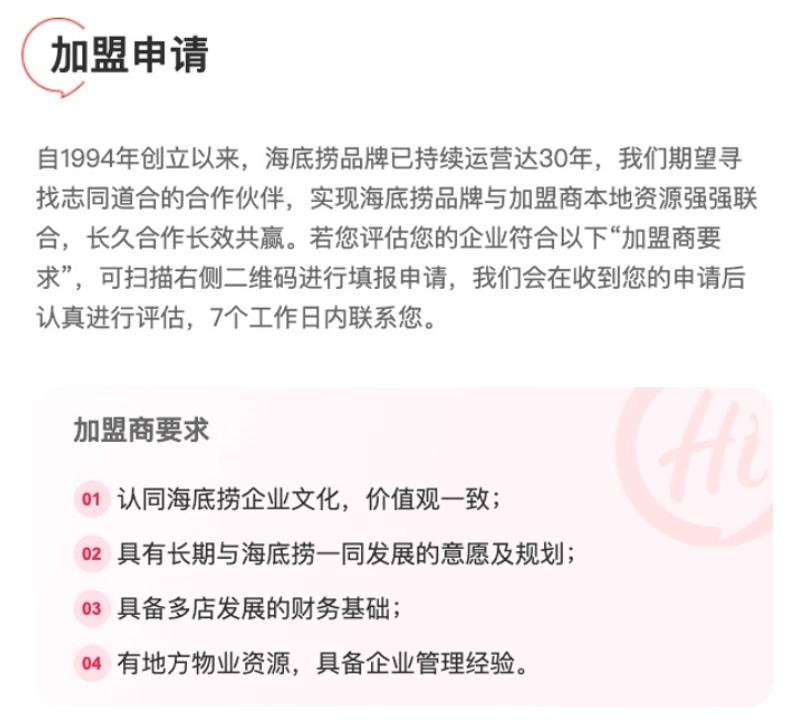 在海底捞对加盟商提出的要求中,第4点就提到需要有地方物业资源,具备企业管理经验。