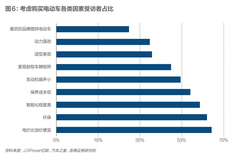 考虑购买电动车各类因素受访者占比 资料来源:J.DPower亿欧、汽车之家、浙商证券研究所