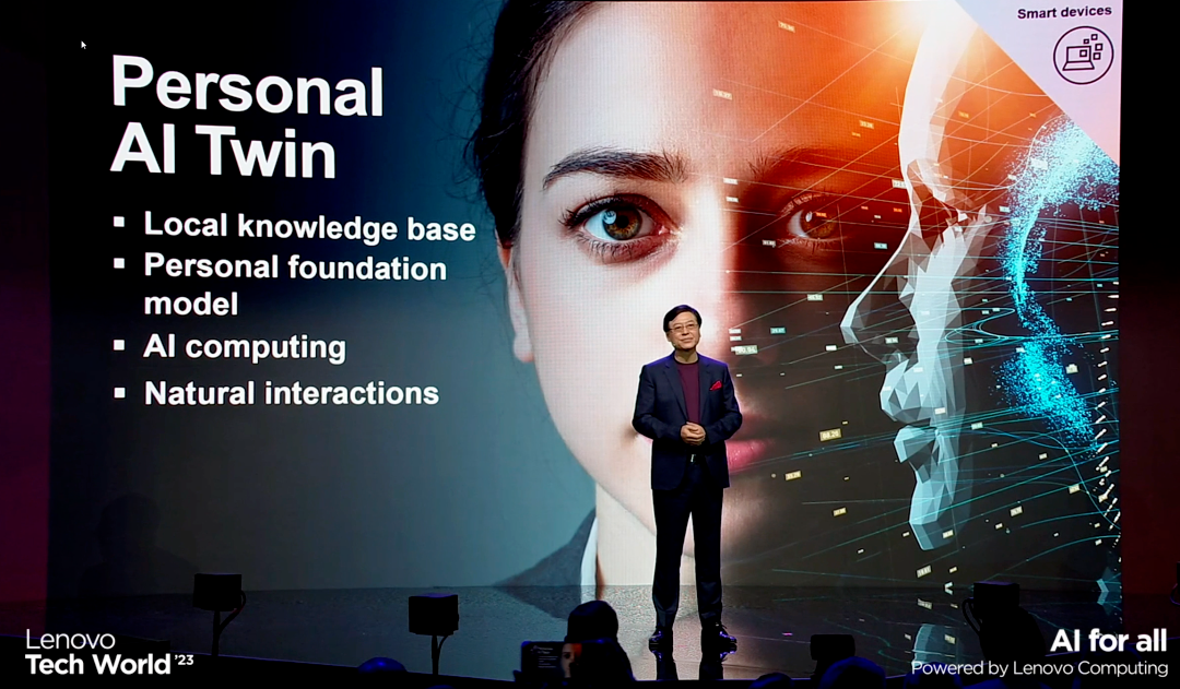 联想也是如此。不仅发布了十余款AI PC,还推出了面向个人与企业且集成AI应用和功能的产品——人工智能双胞胎(AI Twin) ,以及覆盖个人大模型和企业级大模型的混合AI框架。联想集团董事长兼首席执行官杨元庆更是AI PC形容为:“联想发展35年来的又一次重大机遇。”据联想的时间表,2024年也是AI PC元年。