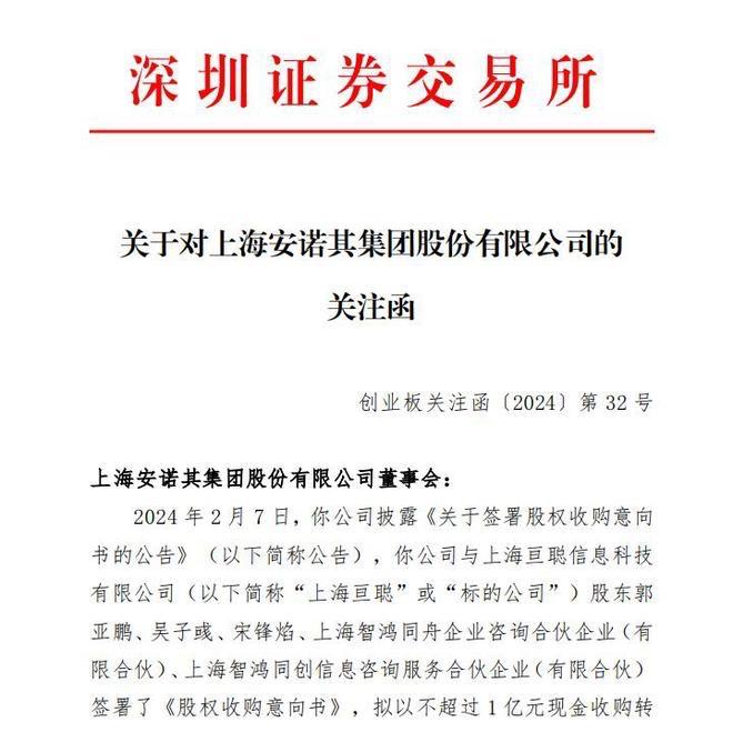 2月21日当天,深交所紧急向安诺其下发了一份“更加沉甸甸”的关注函,要求公司说明跨界涉足新业务的原因,是否存在炒概念、蹭热点的情形。