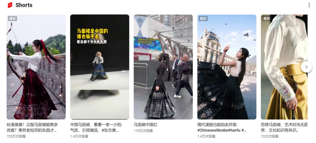 特别是前段时候刚在国内社交媒体出圈的福建游神,同样吸引到外国网友的关注。其视频内容收到了不同国家网友的关注和留言,纷纷表示出了兴趣;还有近两年在国内火爆出圈的汉服马面裙,其中一条的视频播放观看725万次。