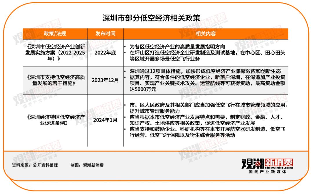 以深圳为例。作为重点打造的未来产业之一,深圳在低空经济支持政策及政府工作方面不断加码,从基础设施建设、企业落户、人才支持等方面全面推动低空经济发展。