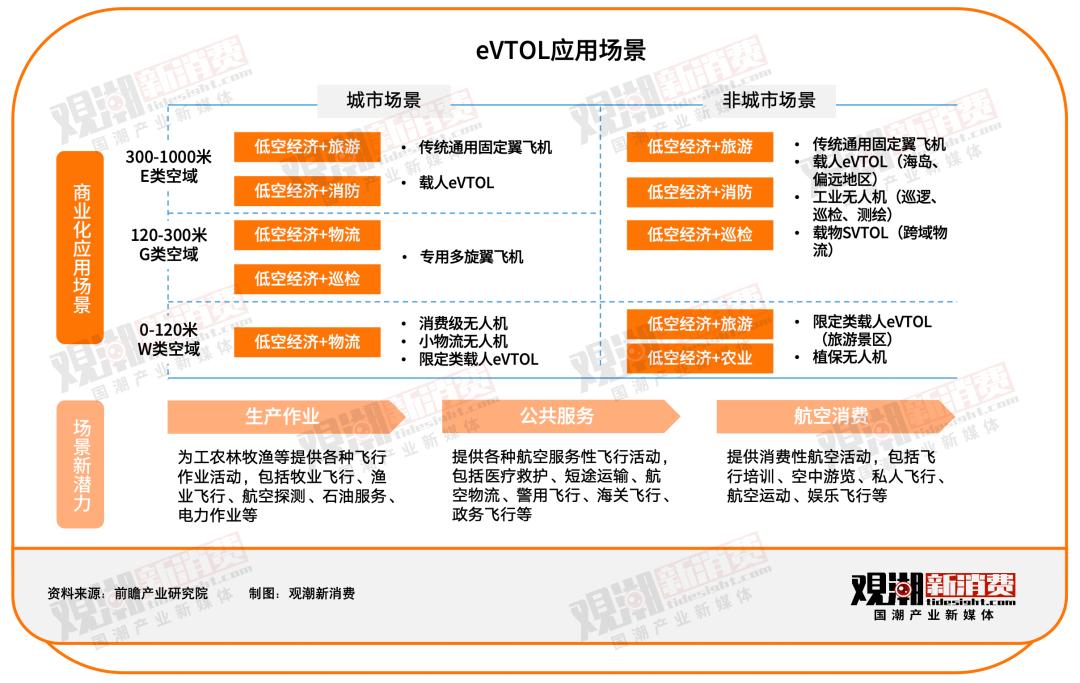 根据eVTOL航速及航程特点,将来可重点覆盖300公里以下的出行场景,解决目标客群的偶发性需求(应急救援、抢险等)和持续性需求(通勤、差旅等)。eVTOL的应用场景可从城市和非城市两个方面进行划分,未来城市场景将会继续扩大,C端应用将会打开市场空间。