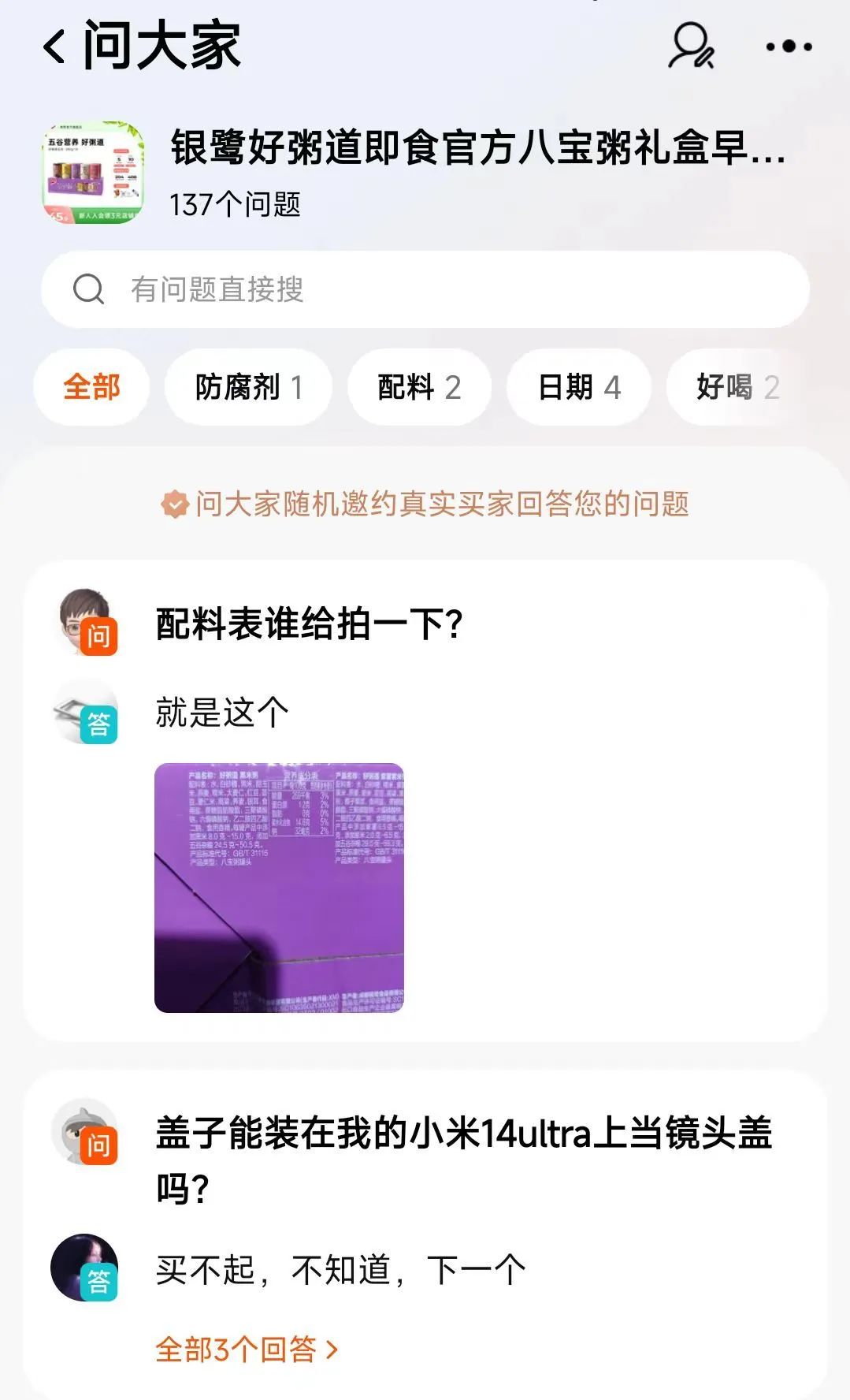 “配件风”已经刮到了银鹭旗舰店,有消费者直接发问:八宝粥的盖子能装在我的小米14Ultra上当镜头盖吗?