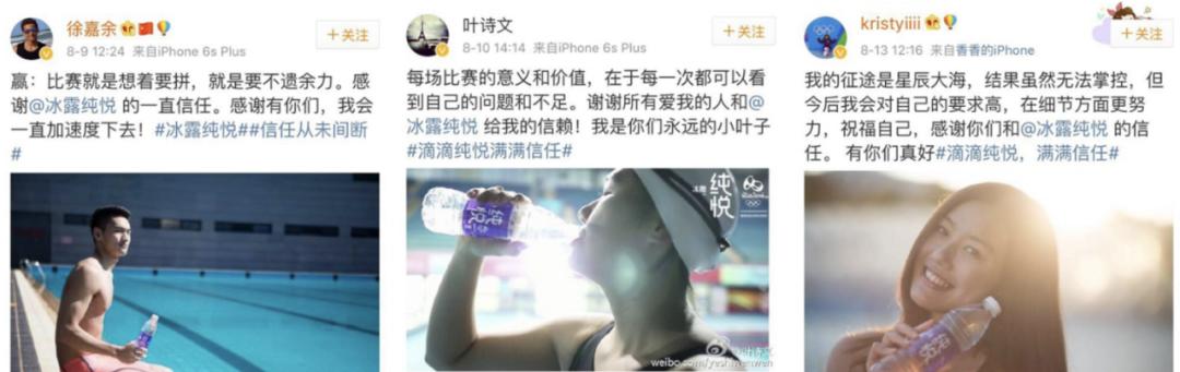 相比之下,刚刚“杀入市场”的农夫山泉则反其道而行,借助体育大赛的热度,让品牌成为热门大赛电视转播的一部分,把两个看似不相关的领域联系在一起,将品牌形象推向新的高度。