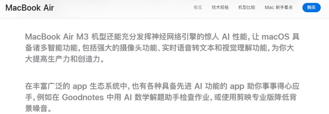 图片:新款Macbook Air的AI能力宣传来源:苹果官网