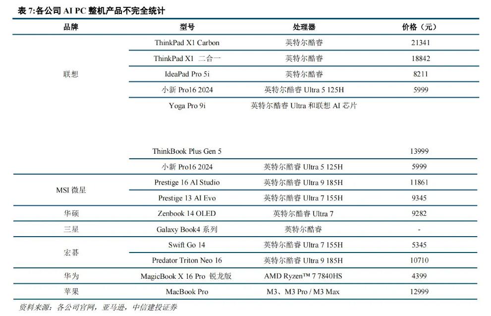 图片:AIPC将覆盖不同定位和价位来源:中信建投