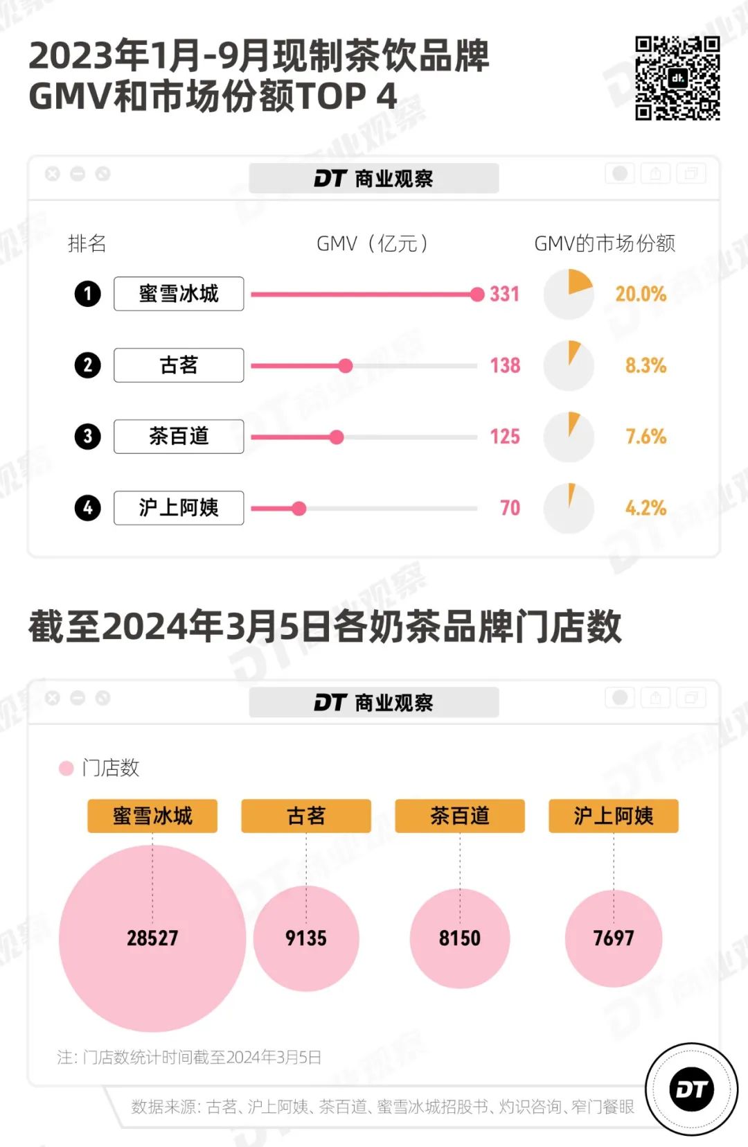 不过,我们计算了沪上阿姨(不考虑轻享版和沪咖)的单店GMV,2023年前3个季度是98.5万元,而古茗2023年一整年的单店GMV是250万元。