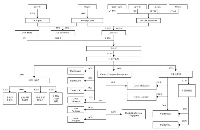 招股书显示,目前公司由Yili Investment持股98.6%,后者由36岁的章国栋、吕伊俐夫妻二人全资控股,二人分别担任卡罗特的执行董事、董事会主席、首席执行官以及执行董事、首席产品官职位。