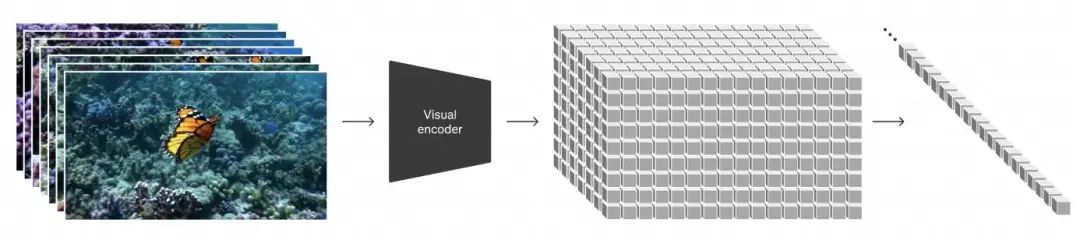 但我们将所有宽高比、时间长短、高分辨率、低分辨率的图像和视频,全部变成叫作补丁(patch)的小块,然后根据输入的大小,在不同数量补丁(patch)的视频上训练模型。