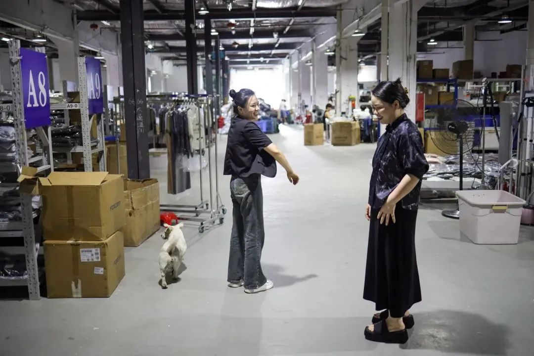 成思媚在女装仓储中心检查货品