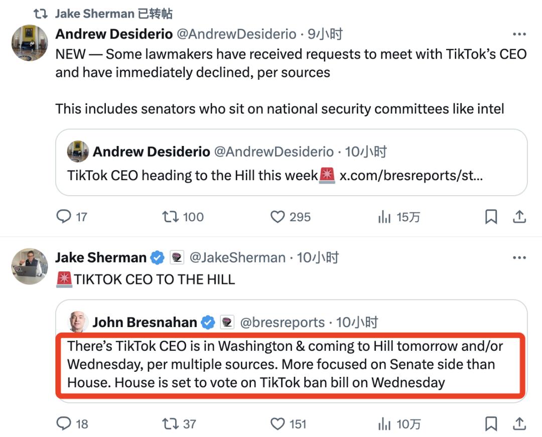 多个消息来源称,TikTok 首席执行官周受资将在本周三访问美国国会山展开游说。