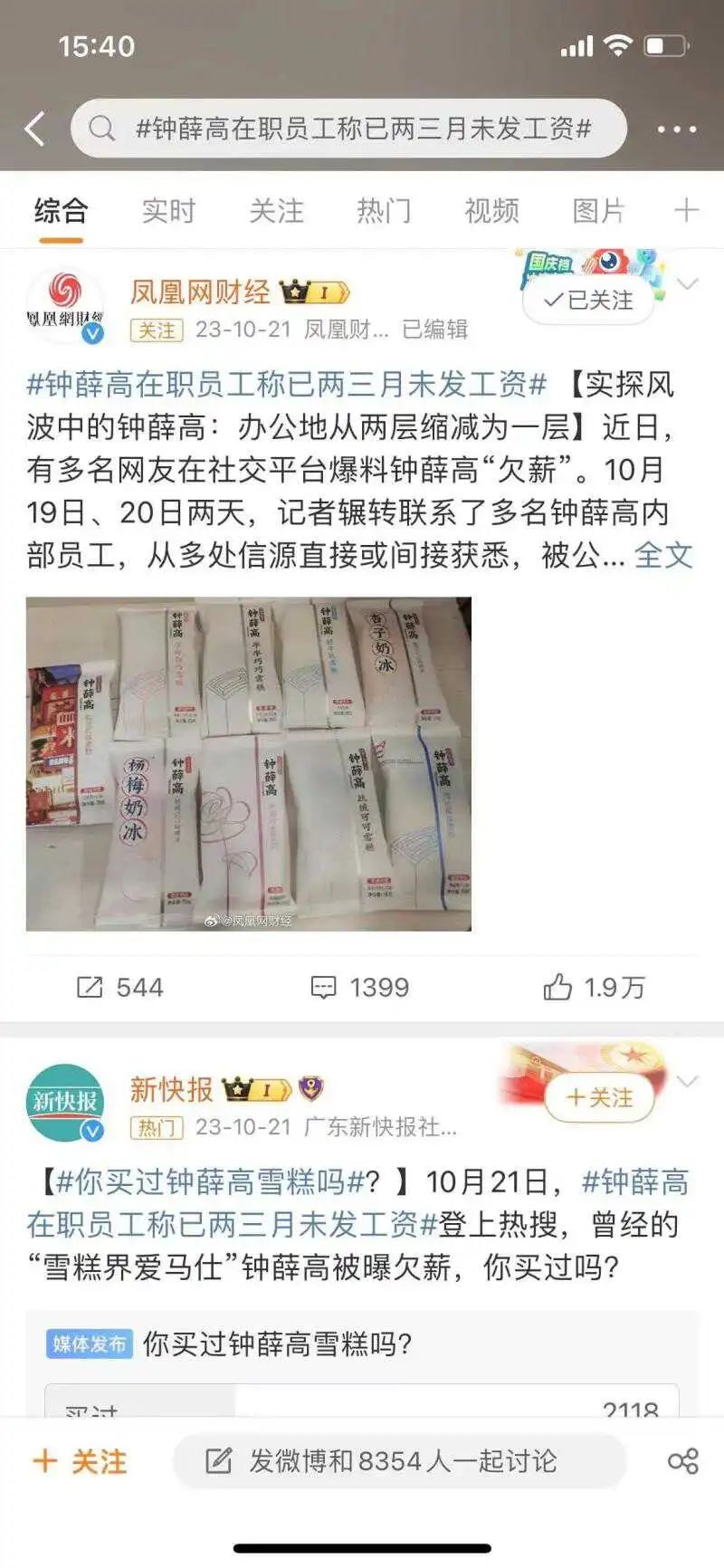 2023年8月11日和22日后,钟薛高的微信公众号和微博双双停更。