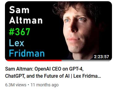 此外,另一档头部播客主理人Lex Fridman也已经官宣将很快邀请OpenAI的CEO山姆·奥特曼(Sam Altman)上节目,正在征集粉丝关心的问题。上次奥特曼出现在这档播客中是一年前,GPT-4发布后不久。