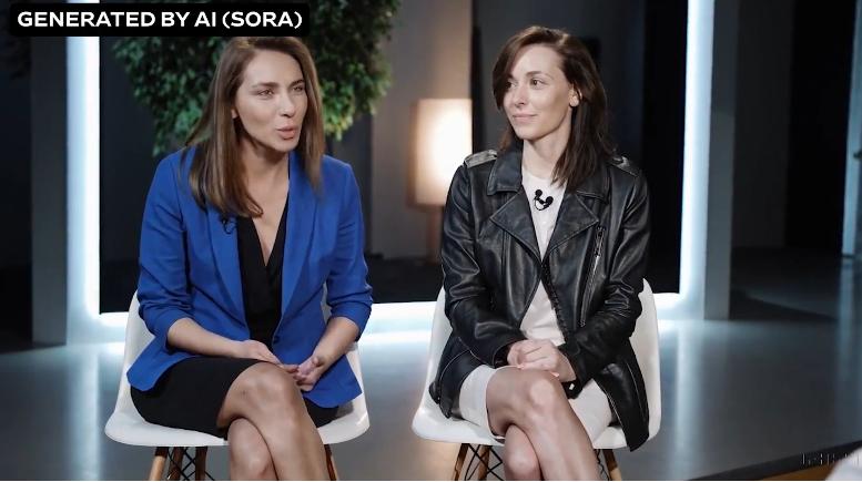一个不可忽略的问题是,Sora为什么效果那么好?对于一则“两个职业女性,30多岁,坐在一个灯光明亮的工作室中接受新闻采访”的指令,主持人尝试了Sora和Runway两个产品。Sora生成的视频几乎可以以假乱真,但Runway的视频则不仅有奇怪且数量过多的手指,且在动作时有明显的嘴部扭曲,看起来颇为诡异。