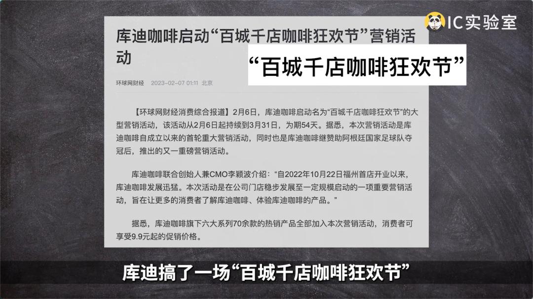 于是,去年2月,库迪搞了一场「百城千店咖啡狂欢节」,把单杯价格打到了九块九。