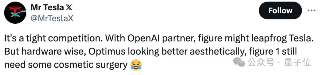 但硬件方面,擎天柱看起来更美观,Figure 01仍然需要一些“整容手术”。(doge)