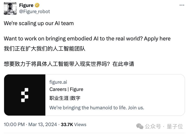 值得一提的是,与炸场demo同时发布的,还有Figure的招聘信息: