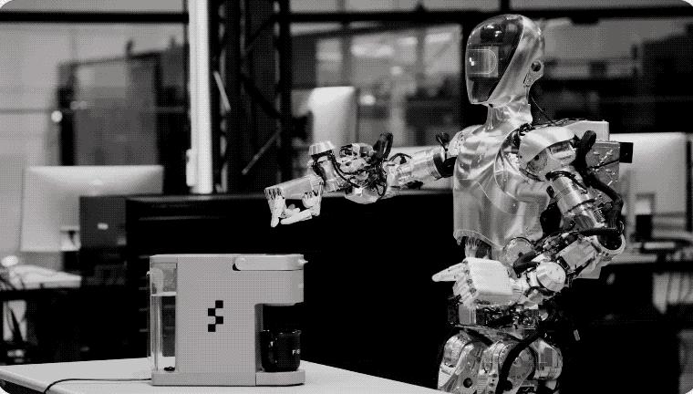 通过观看人类的示范视频,仅需10小时端到端训练,Figure 01就能学会用胶囊咖啡机泡咖啡。