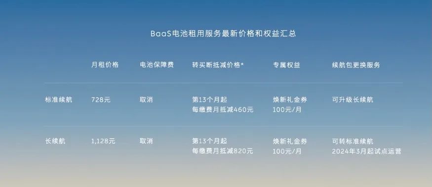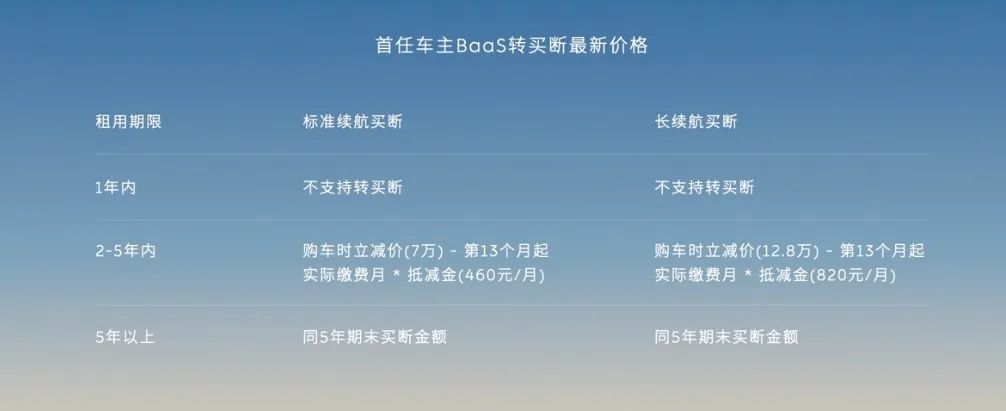 更重要的是,有了这次降价的调整,BaaS买车的客户是越用越省,这扭转了BaaS方案此前不受待见的局面。