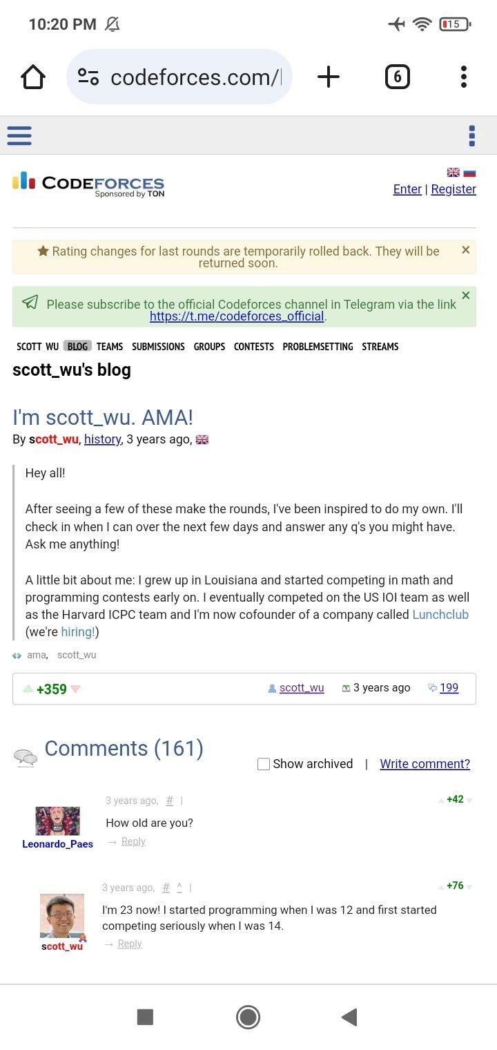 后来,在亲兄弟Neal Wu的影响下,Scott Wu逐渐迷恋上了竞争性编程。二人均成为了竞争性编程领域的传奇人物。兄弟俩从青少年时期就是国际编程比赛的“常胜”选手。