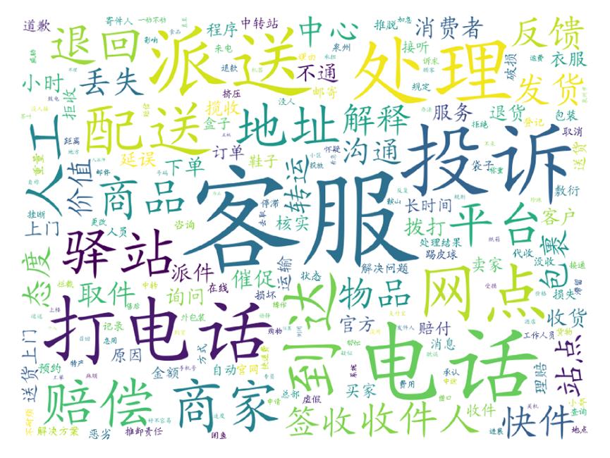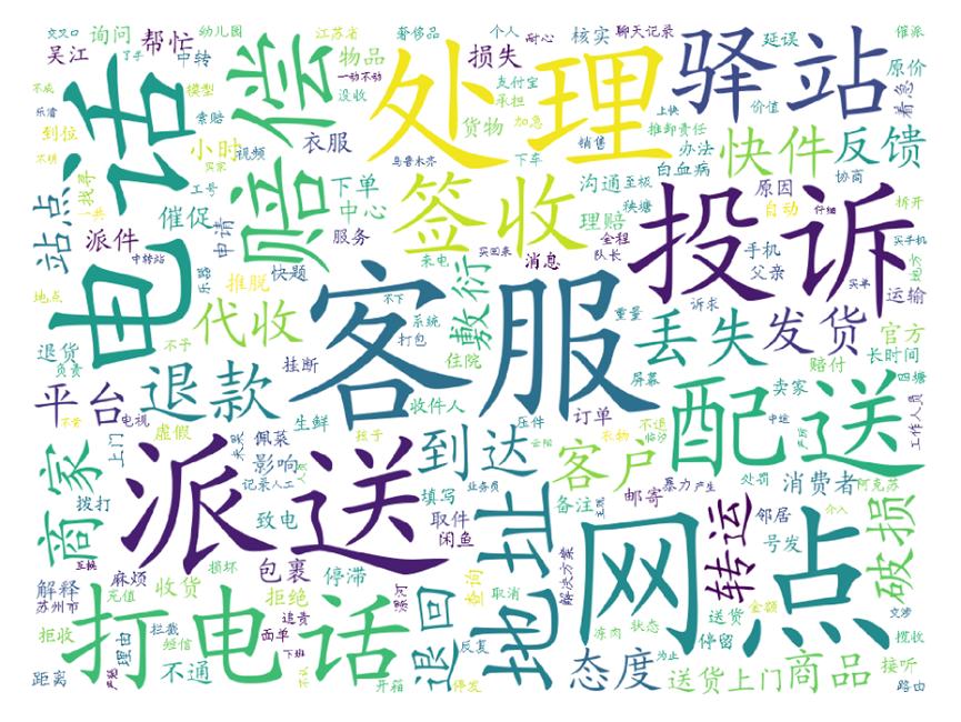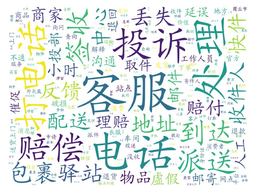 通过数据分析,可以看出消费者对快递公司主要不满的点是:派件慢、不送货上门、出现货品丢失。
