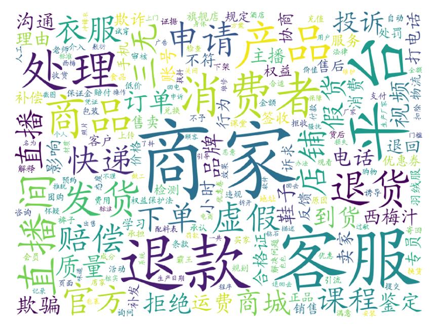 其次,可以看到数量第二多关键字是“客服”,说明消费者遇到问题第一反应并不是投诉而是和客服联系,在没有满足诉求后才会投诉。这也反映出企业客服还有很大的改善空间。客服能否合理妥善的解决与消费者的矛盾是企业成长的重要一环,希望广大企业重视起来。