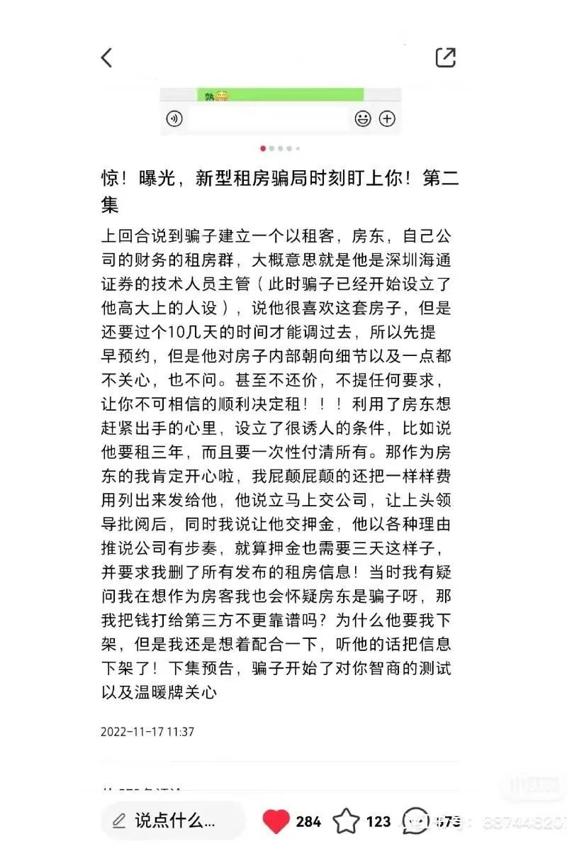 不少用户反映,这些骗局几乎都是团伙作案,这些人每天盯住小红书的直租信息,准备行骗。