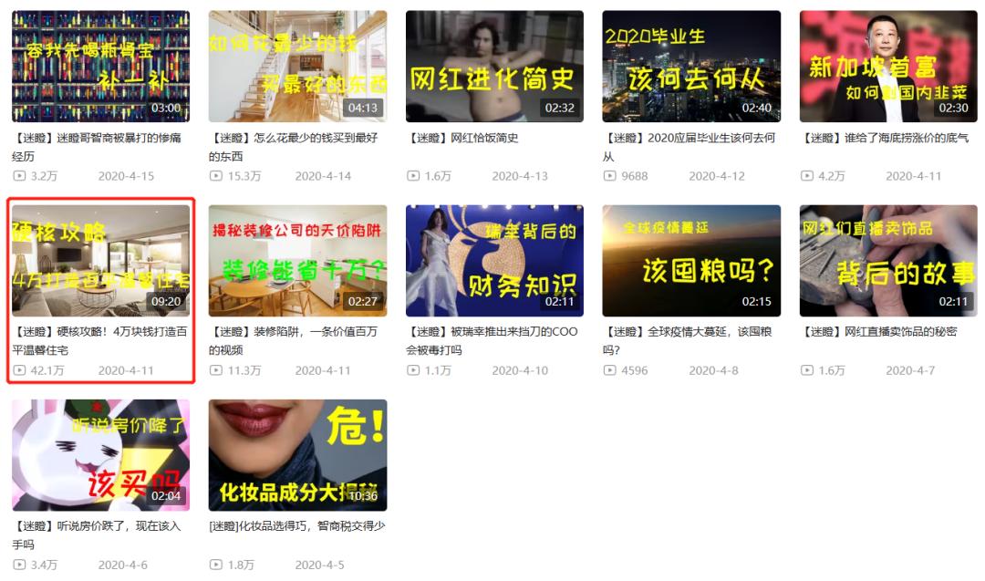 原因很直接,在入驻 B站 的前半个月中,家居向内容数据表现最好,大部分相关内容播放量都能超过 10 万,最好数据飙升至 40 万,非家居向内容播放量则表现平平。