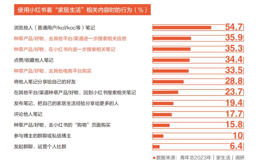 据《2023 年“家生活”趋势白皮书》统计,小红书上家居家装内容蓬勃生长,3 年来相关笔记规模增长了 6 倍,相关笔记的搜索量增长 3.5 倍。